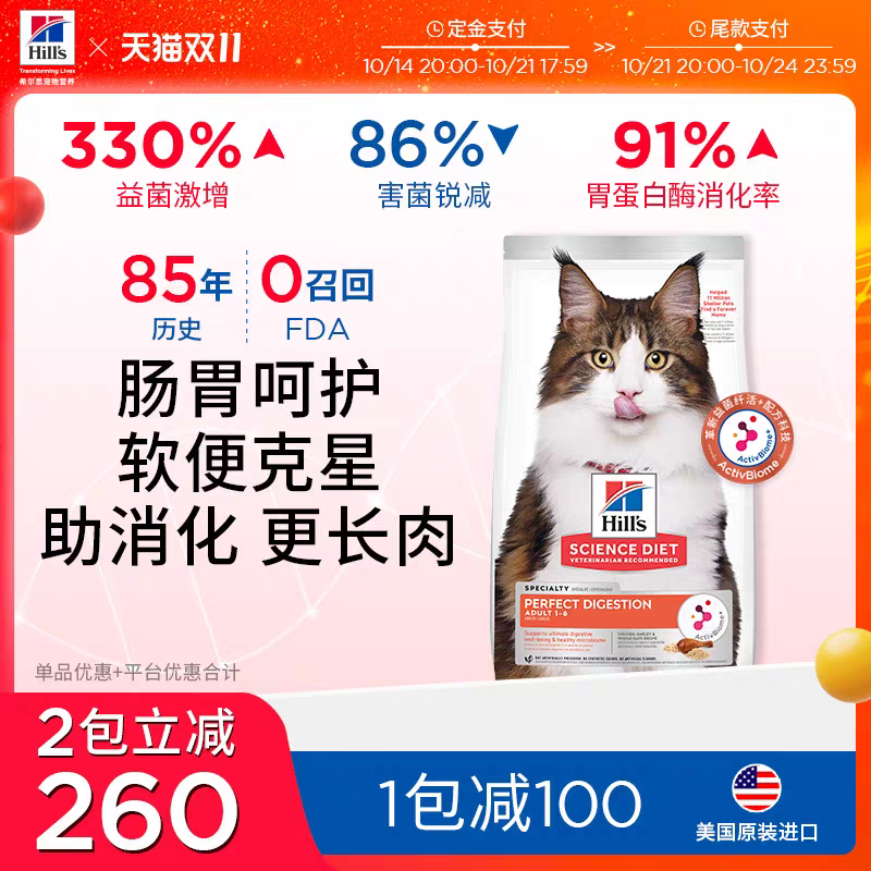 Hill's希尔思理想调理肠胃猫粮克软便拉稀希尔斯进口全价成猫粮