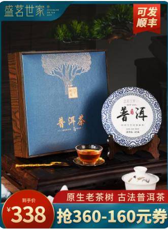 盛茗世家普洱茶叶礼盒装云南陈香熟普熟茶茶饼357g 长辈领导