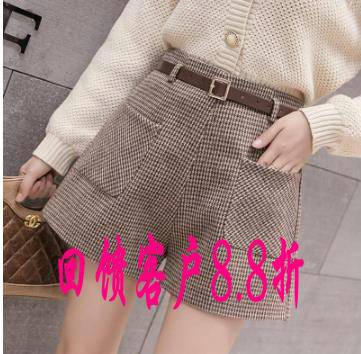 2019秋冬新款韩版毛呢格子高腰配皮带短裤优雅时尚