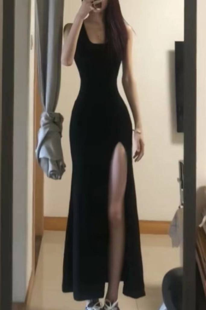 心机裙子设计感超仙女冷淡风赫本小黑裙极简主义鱼尾连衣裙2019夏