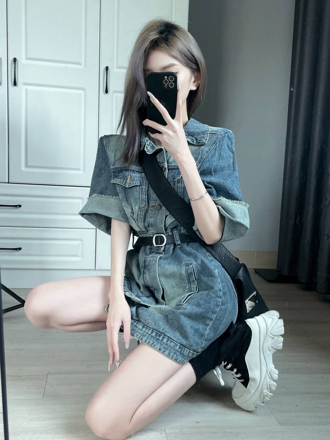 显瘦连衣裙 2020夏季新款品牌女装圆领一粒扣网纱a字裙