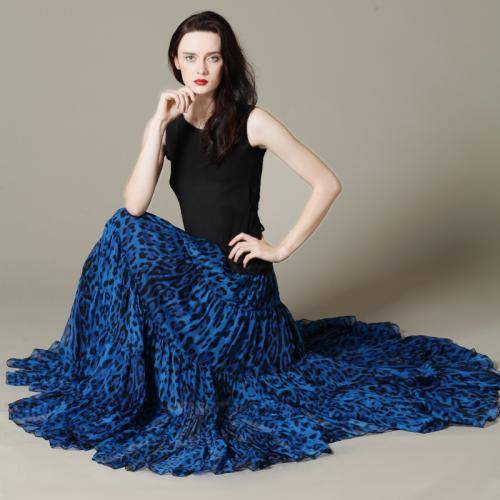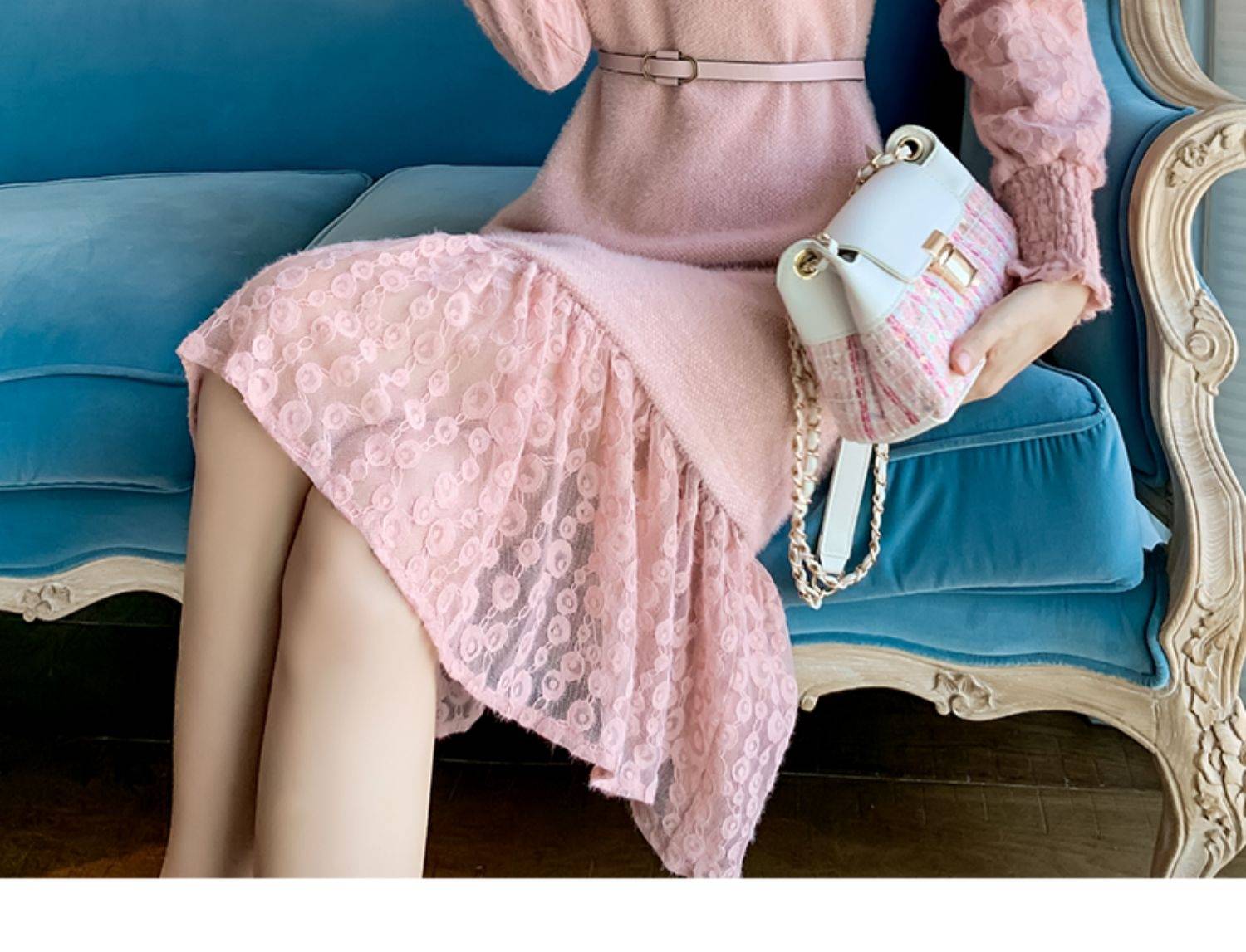 法式复古过膝收腰显瘦气质春夏蓝色长裙