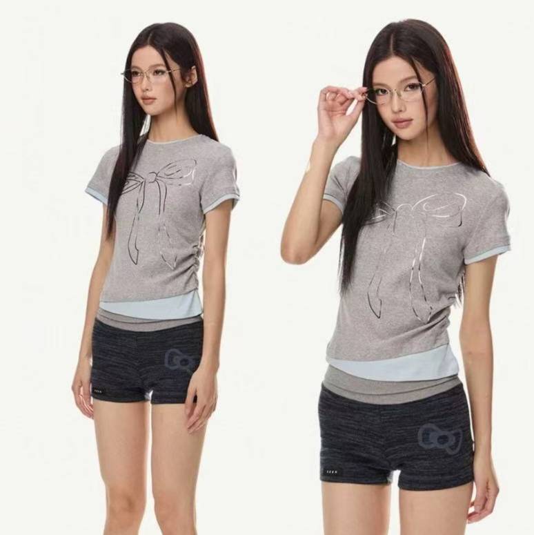 美式立体蝴蝶结印花短袖T恤女夏季新款辣妹