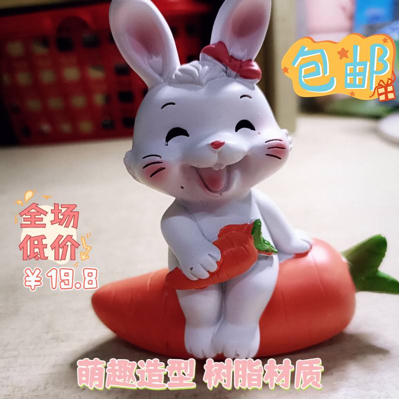 治愈系创意开心兔小摆件本命年可爱家居客厅卧室桌面装饰品摆设品