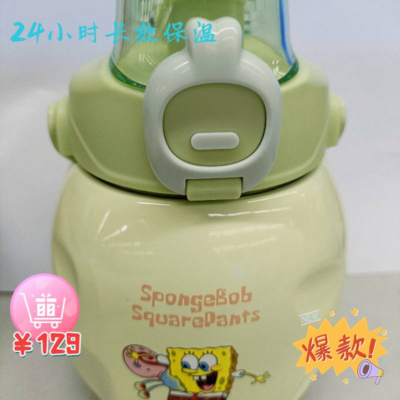 海绵宝宝保温杯女高颜值儿童学生大容量水杯子网红大肚杯壶不锈钢