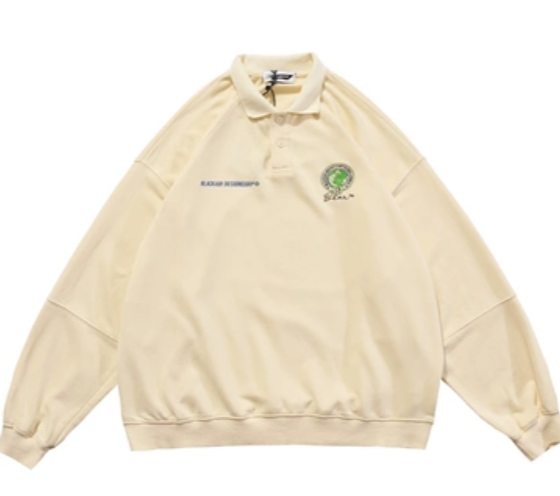 NECO美式复古polo领做旧水洗卫衣外套男女2023新款上衣ins潮