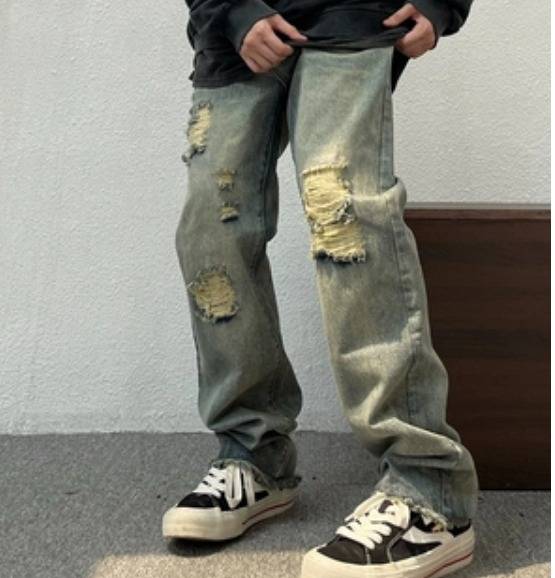 NECO美式街头hiphop破洞牛仔裤潮牌宽松直筒高街vibe风男女