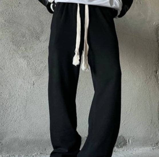 NECO休闲遛弯神裤直筒百搭显瘦阔腿运动裤宽松编织腰带拖地裤