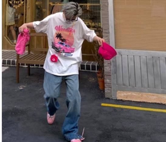 NECO2023夏季新款粉色赛车T恤夏季t恤潮牌字母男女宽松短袖
