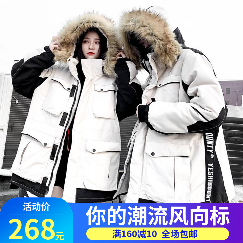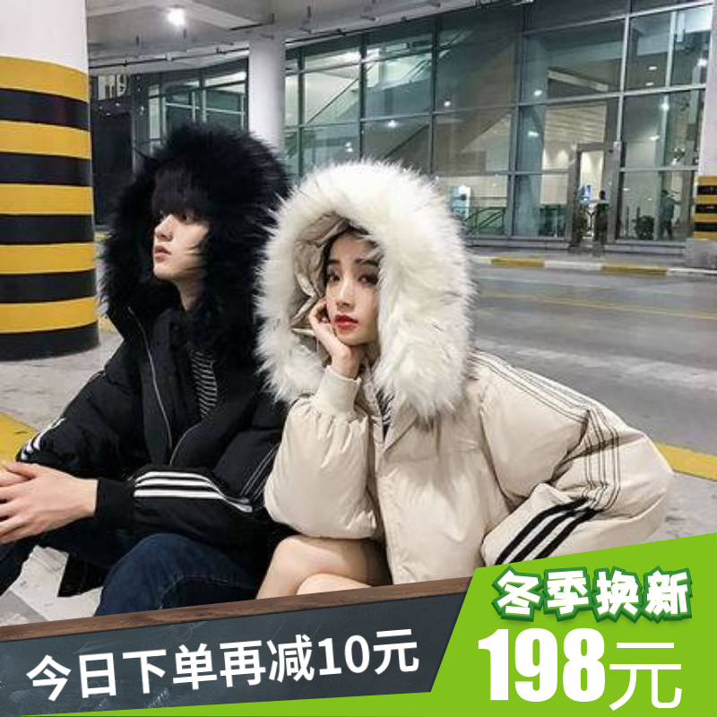 情侣装外套冬季2018棉衣男女宽松韩版中长款大毛领棉服加厚棉袄潮