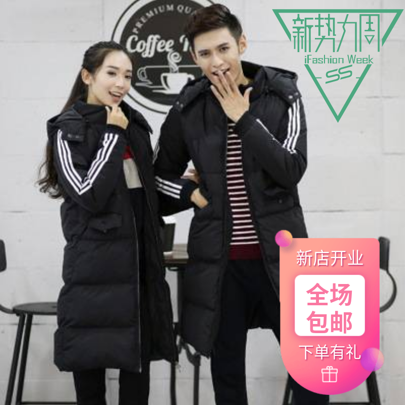 冬季外套男加厚情侣装中长款品牌棉衣韩版带帽棉袄女青年羽绒棉服