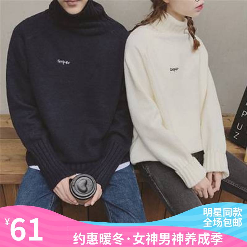 绣花高领毛衣青少年休闲男士针织衫打底冬季新款情侣装潮新品