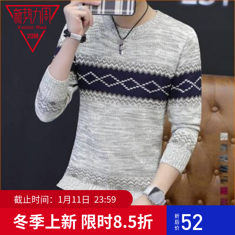 2018秋冬新品针织衫修身毛衣英伦加男士圆领长袖外套情侣男装线衫