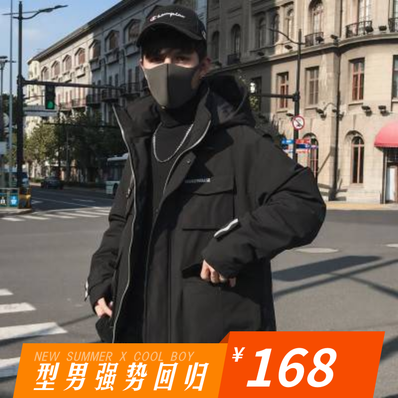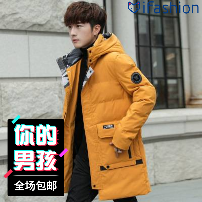 2018冬季时尚休闲保暖男士棉服韩版修身潮流连帽百搭中长款棉衣男