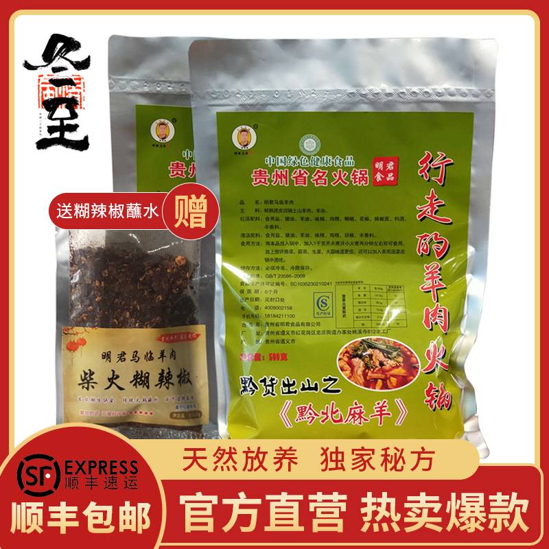明君马临羊肉火锅真空包装带皮熟食回锅羊肉新鲜即食贵州特产500克装