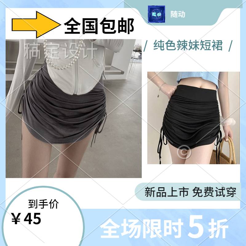 新款流行百搭半身高腰抽绳绑带弹力短裙全国包邮全场5折起