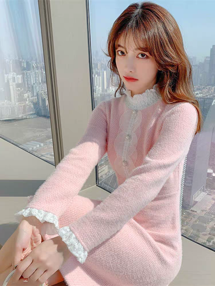 法式长袖连衣裙女装秋冬季2023年新款打底加厚冬裙搭配气质毛衣裙