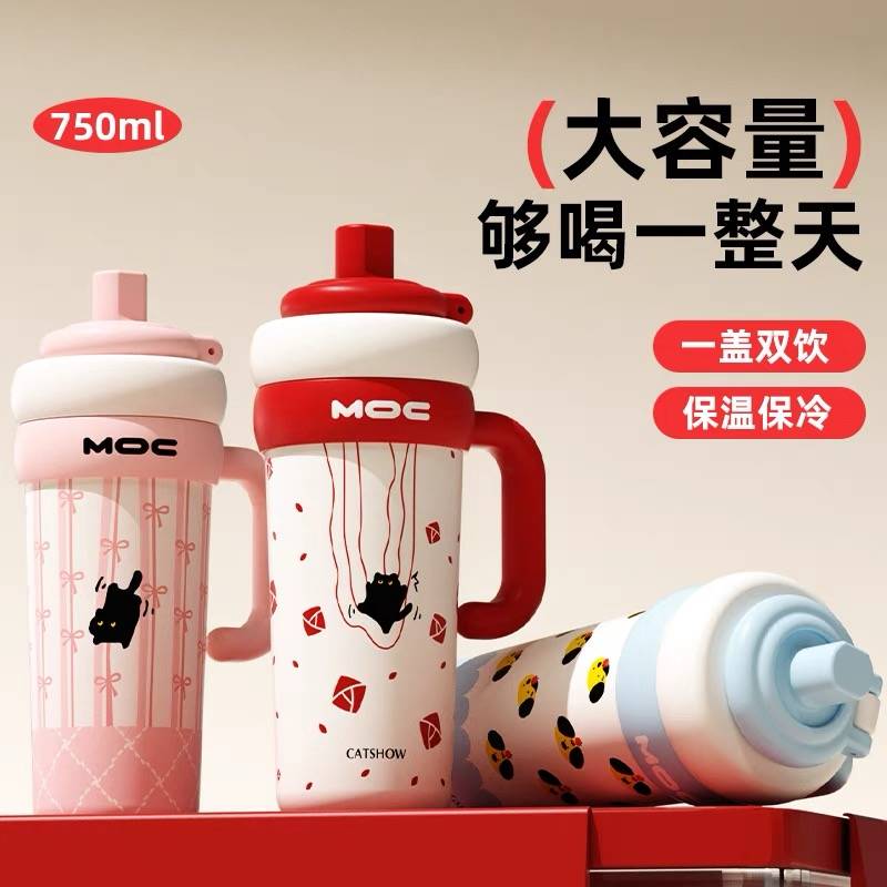 陶瓷内胆保温杯女生2024新款冰霸杯大容量水杯巨无霸吨吨吸管杯子