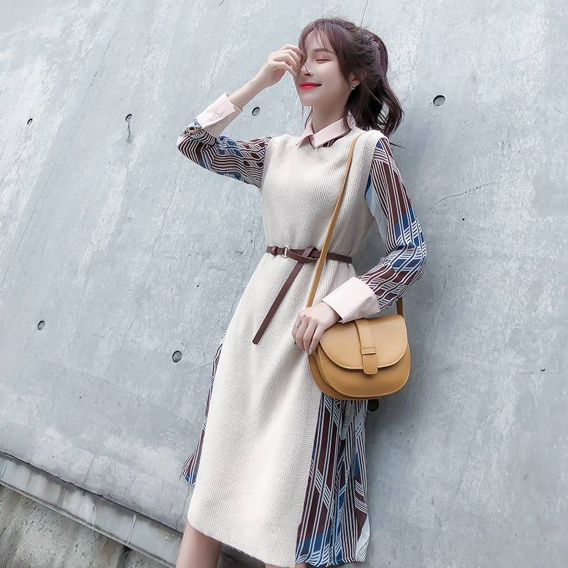 2018夏季新款韩版气质中长款收腰系带V领小清新连衣裙包邮