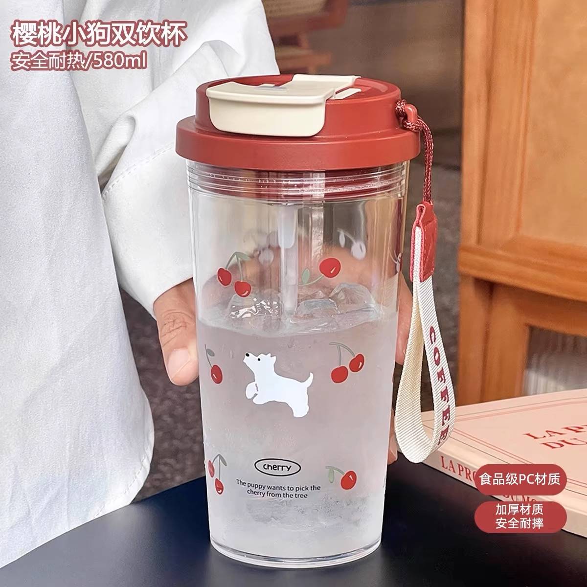 2024新款高颜值女咖啡双饮杯吸管水杯大容量耐高温塑料杯夏天杯子