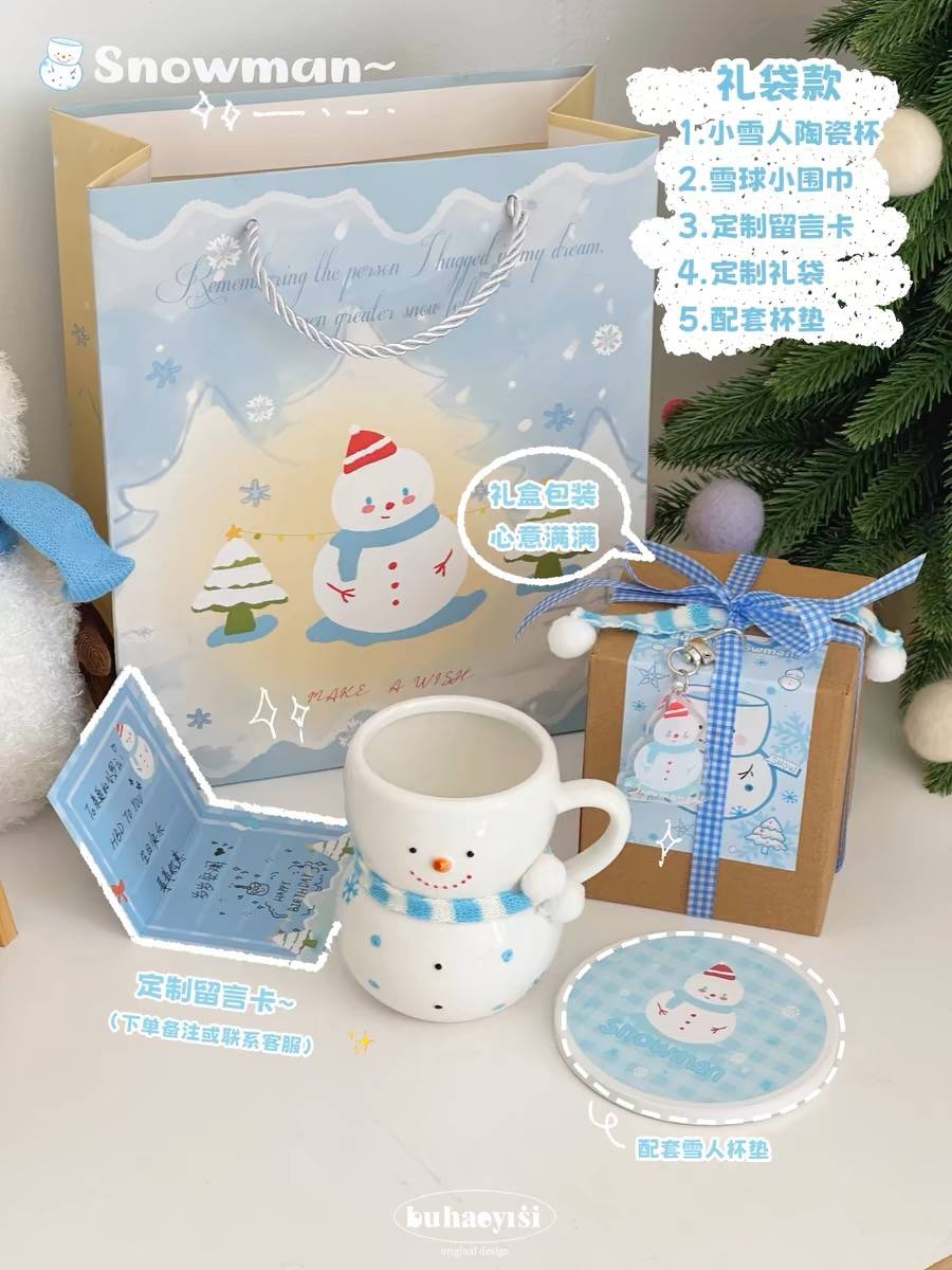 圣诞礼物*可爱颜值ins雪人玻璃杯水杯早餐杯咖啡杯送闺蜜礼物礼盒
