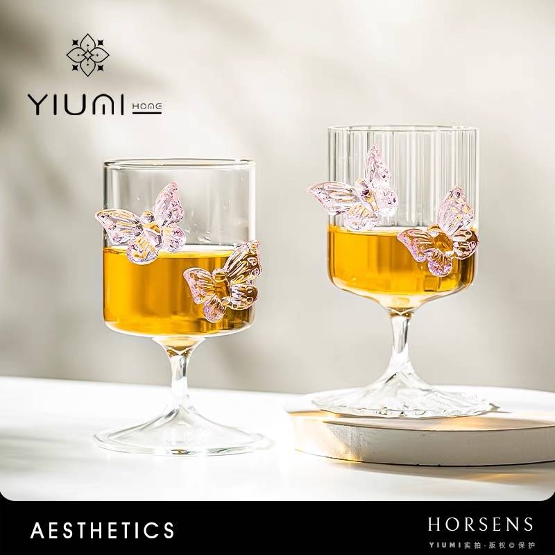 YIUMI轻舞*高颜值设计款立体蝴蝶杯玻璃高脚杯果汁杯甜酒杯送女生