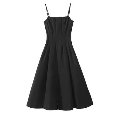 新款束腰小黑裙吊带下开叉拼接设计感实足夏季