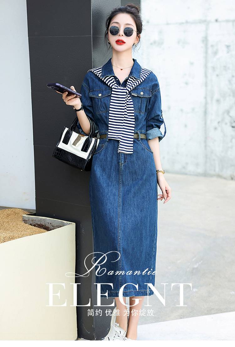 同款2023年新款披肩牛仔连衣裙女长裙牛仔裙包臀裙子春秋季