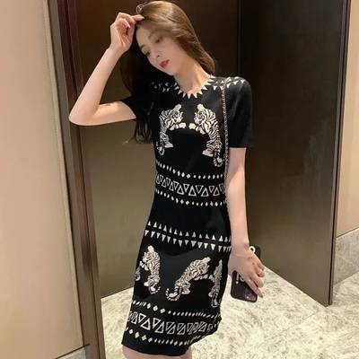 Leathercat连衣裙女夏季2023新款高级感港味复古chic显瘦针织裙子