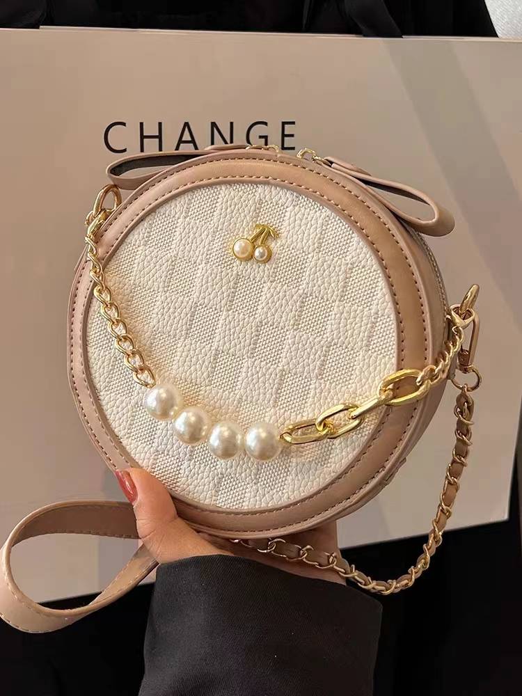 今年流行包包2023新款时尚珍珠链条包高级质感百搭小众斜挎小圆包