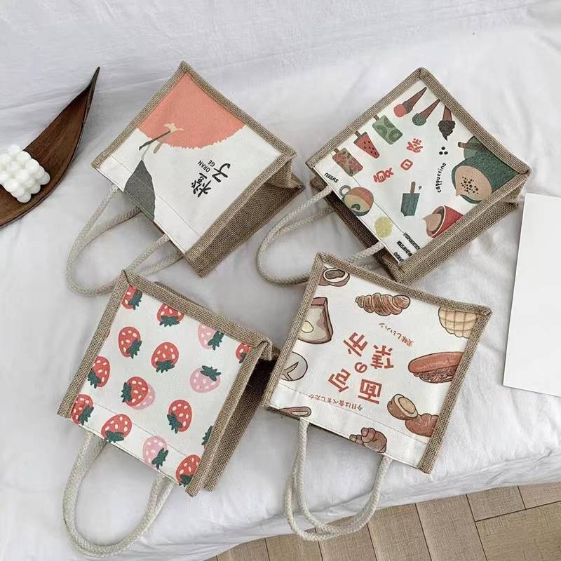饭盒便当包包2022帆布包女单肩手提袋ins日系卡通大学生上课包潮