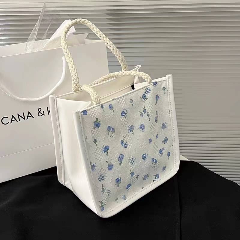 手提包包女2022新款小清新碎花时尚饭盒便当包ins日系上班手拎包