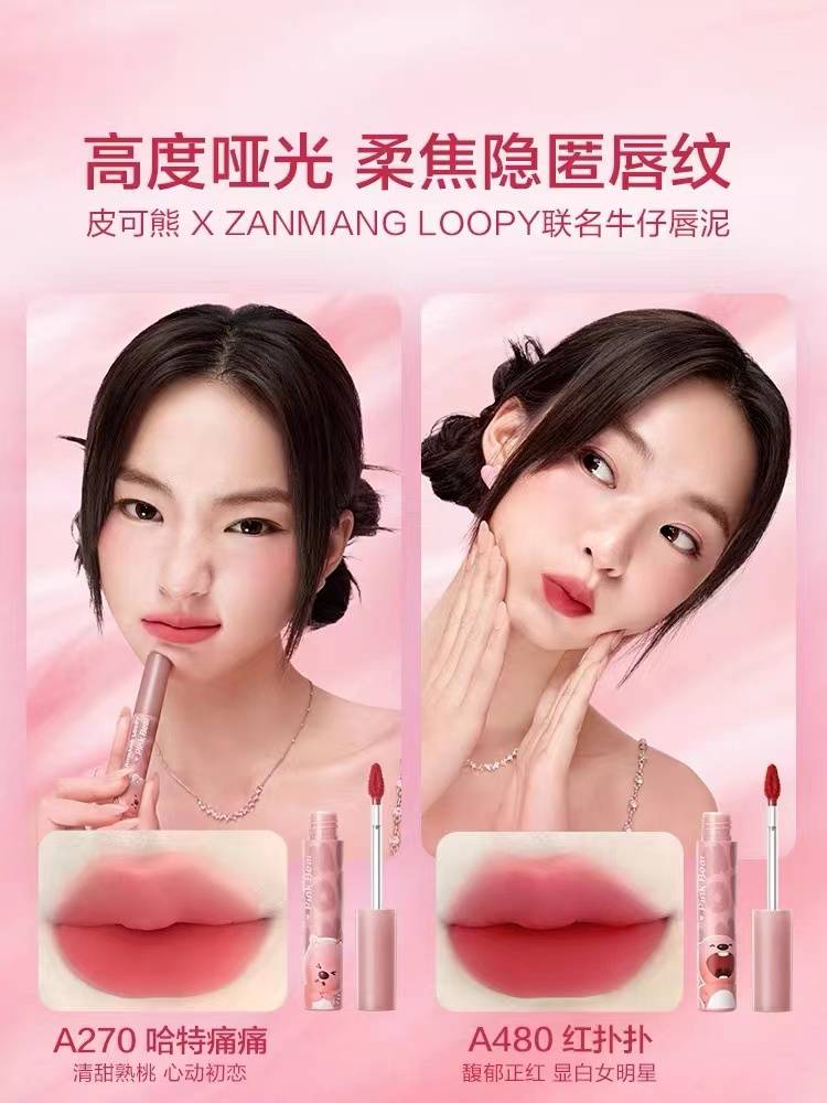 pinkbear皮可熊loopy露比唇釉唇泥口红棕盘滋润彩妆礼物送女友