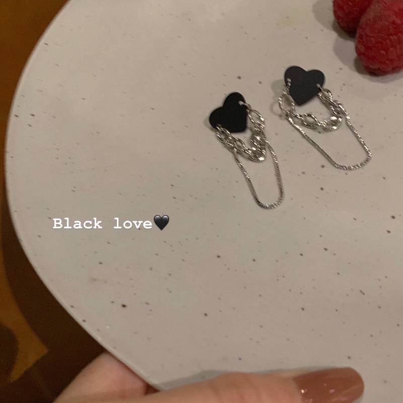 黑色爱心链条拼接耳钉女小众设计感高级甜酷辣妹耳环个性百搭耳饰