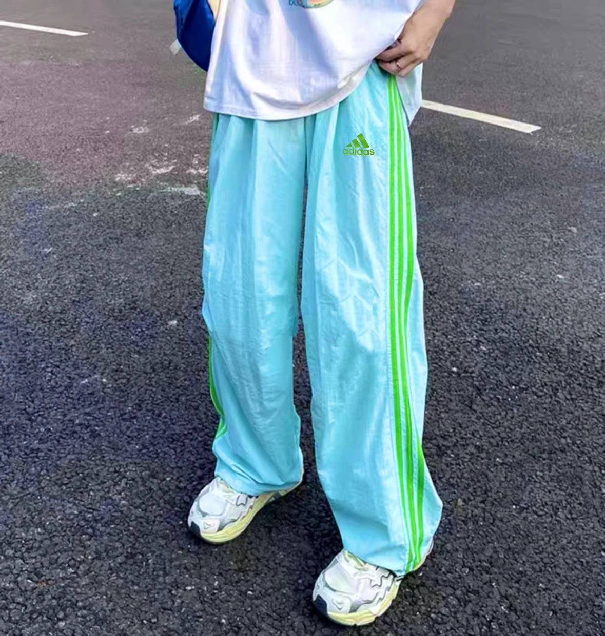 蒂芙尼蓝三条杠运动机能裤登山工装抽绳长裤