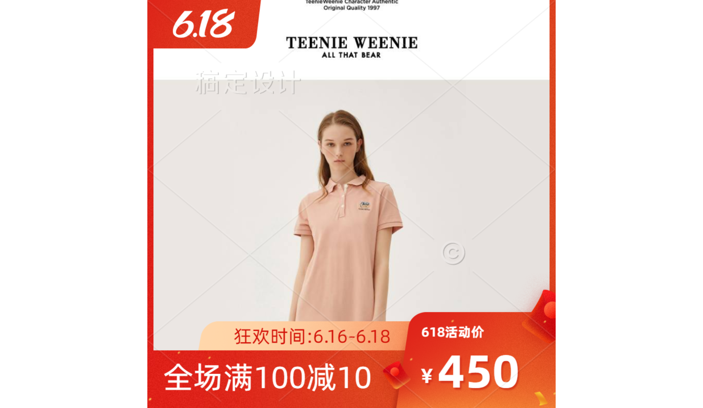 TeenieWeenie小熊polo领连衣裙中长款A字T恤裙2021夏季新款