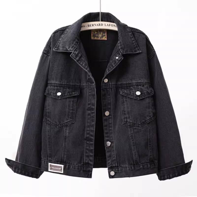 黑灰色牛仔外套女短款2023春秋韩版宽松百搭口袋小个子夹克上衣潮