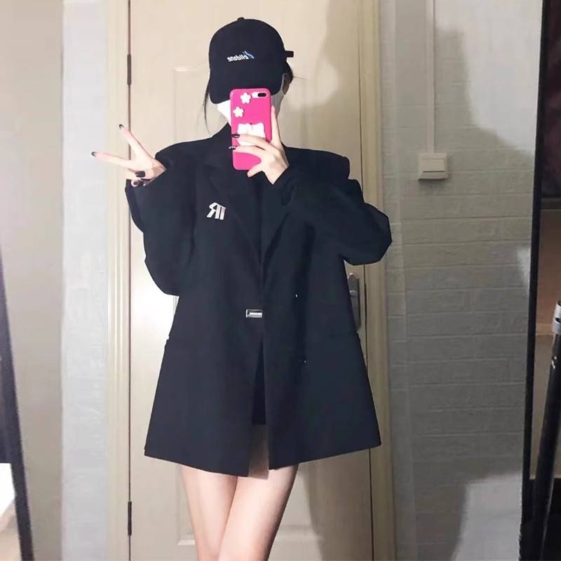 高级设计感黑色西装外套女2023年春秋装新款宽松oversize休闲西服