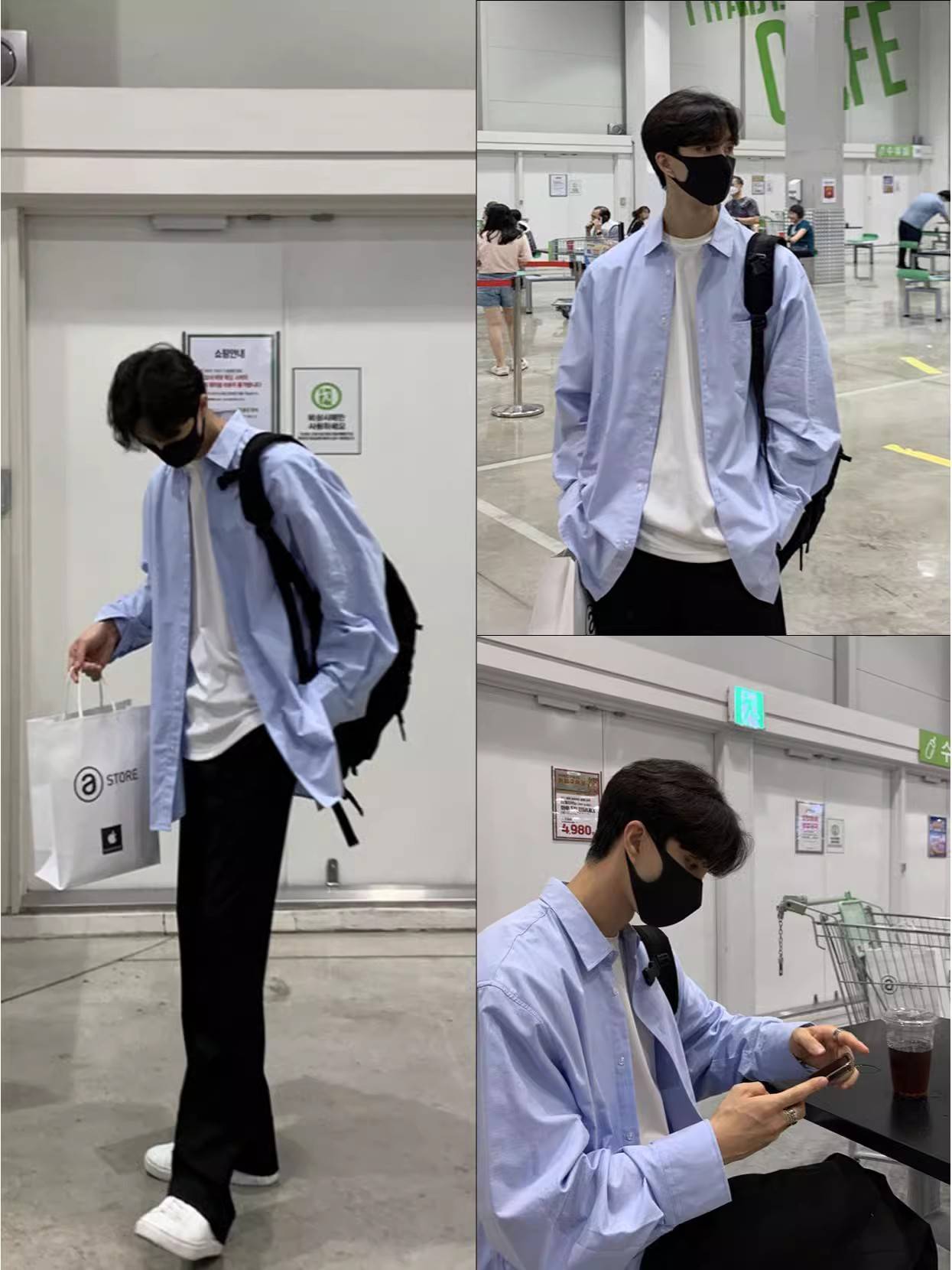 春秋季长袖天蓝色衬衫男女oversize宽松休闲上衣港风ins潮牌衬衣