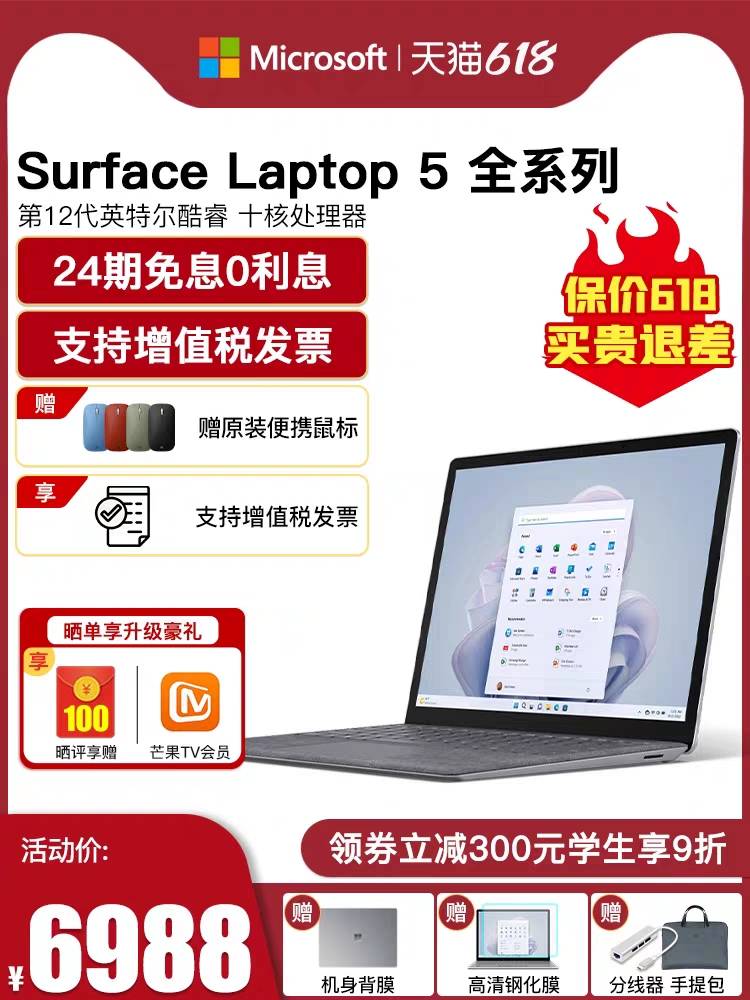 【24期免息】微软Surface Laptop 5 i5 i7 13.5英寸时尚商务轻薄便携笔记本电脑12代酷睿Lap