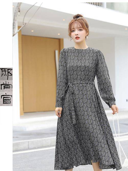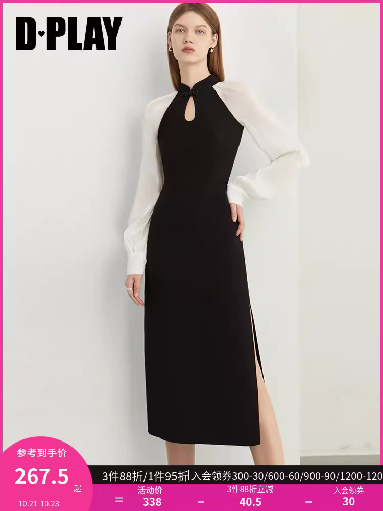 秋装新国风改良旗袍黑白撞色鎏光纱泡泡袖连衣裙轻礼服