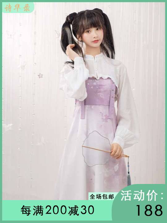 诗华录 博物馆:烟堇 汉元素衬衫吊带裙原创改良汉服女日常夏国潮 188.00 已售:0件
