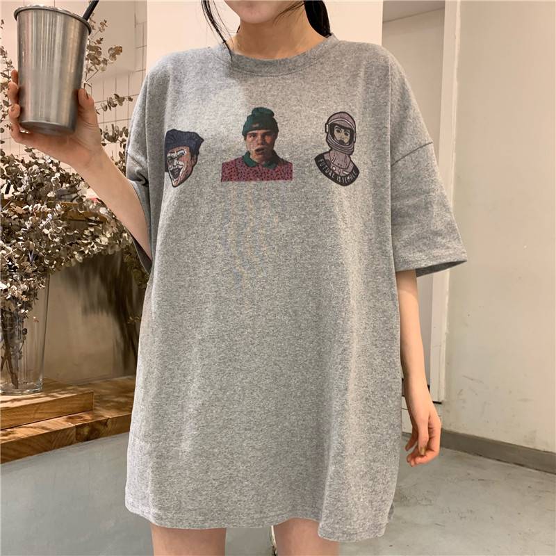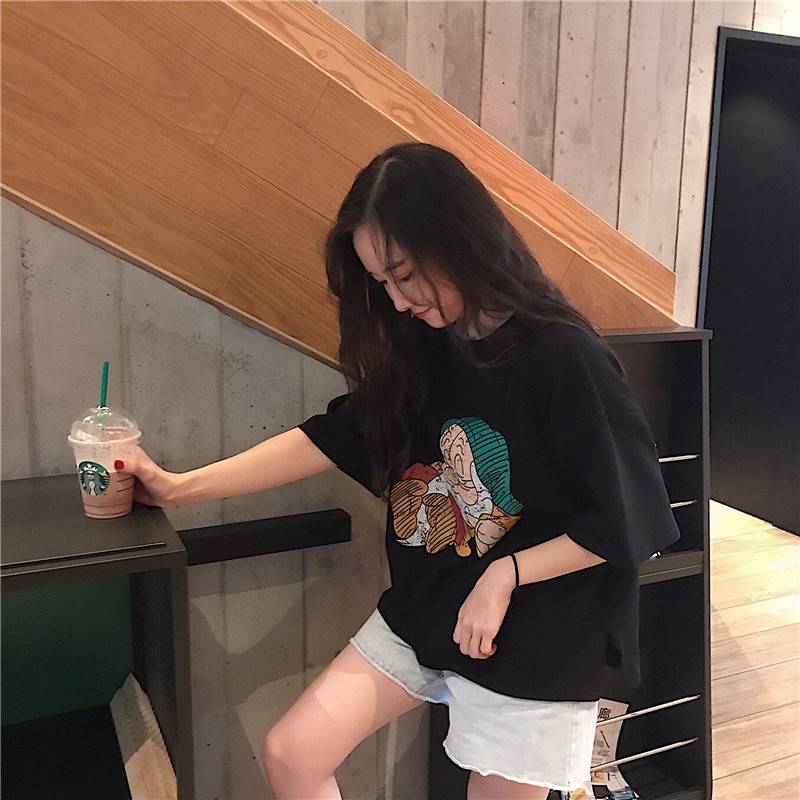 网红港风宽松ins短袖t恤女2019早春韩版原宿bf怪味百搭丧系上衣服