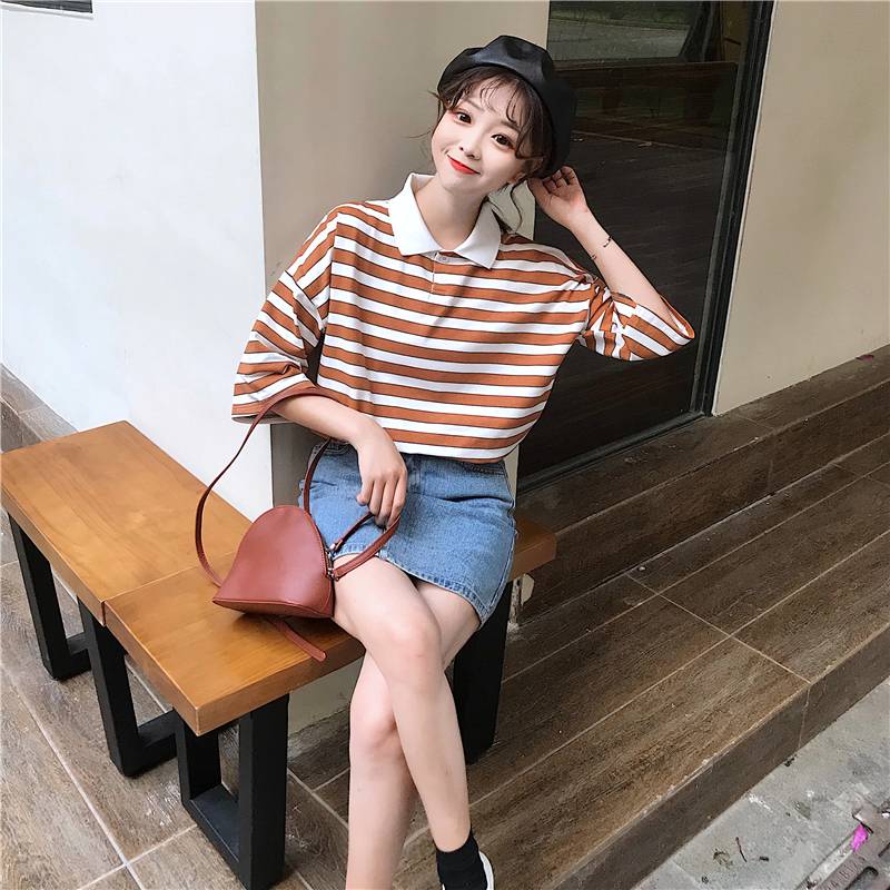 短袖t恤女装初春2019新款宽松韩版夏季条纹polo衫ins上衣服潮cec