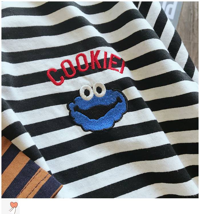 ANNIE 韩国chic 简约条纹刺绣芝街圆领短袖宽松T恤休闲打底衫