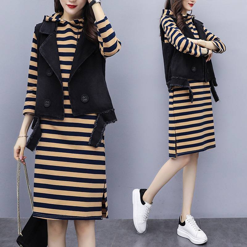 2019秋季新品显瘦百搭休闲显高两件连衣裙