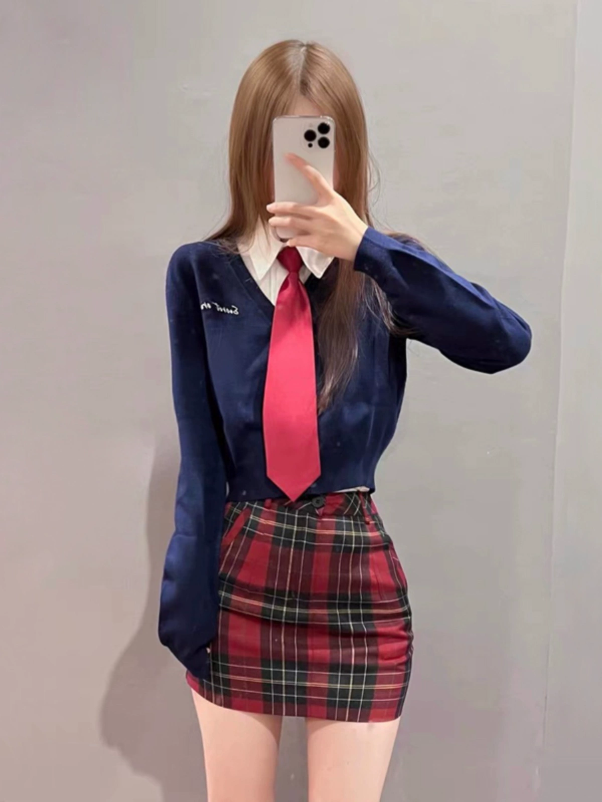 川田晴子jk制服包臀裙套装女长袖秋季原创正版小个子马甲格裙套装