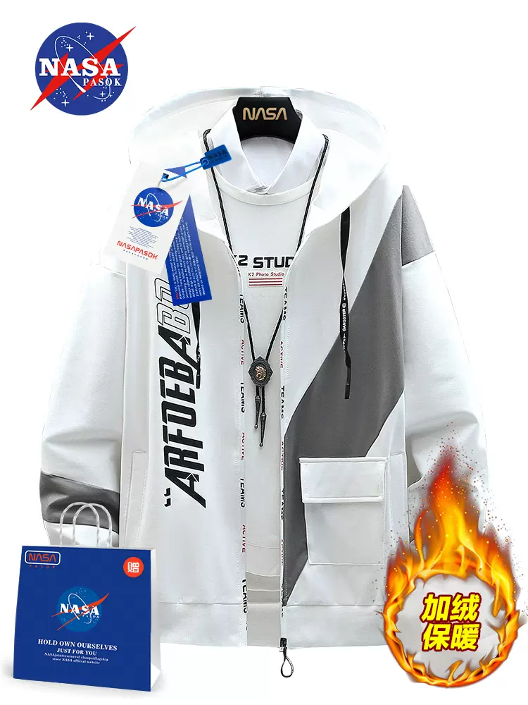 NASA秋季外套男士薄款卫衣2023新款开衫夹克青少年学生连帽上衣服