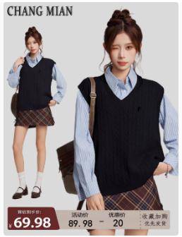 2018新款海军风V领毛衣女秋冬季学生套头宽松慵懒条纹针织衫现货