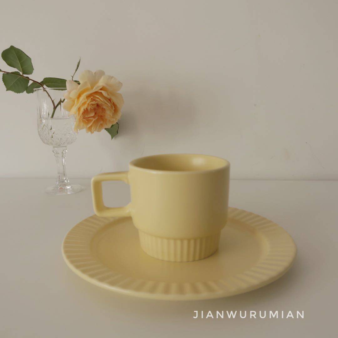 香菜盘子 奶油黄色餐盘咖啡马克杯哑光陶瓷西餐盘